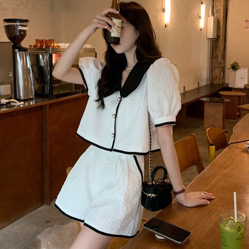 サマールーズスリーブショートジャケット ハイウェストウェストポケットワイドレッグショーツ レディース 夏物 ブルマー ワイドパンツ 6/8 mi4674834960429