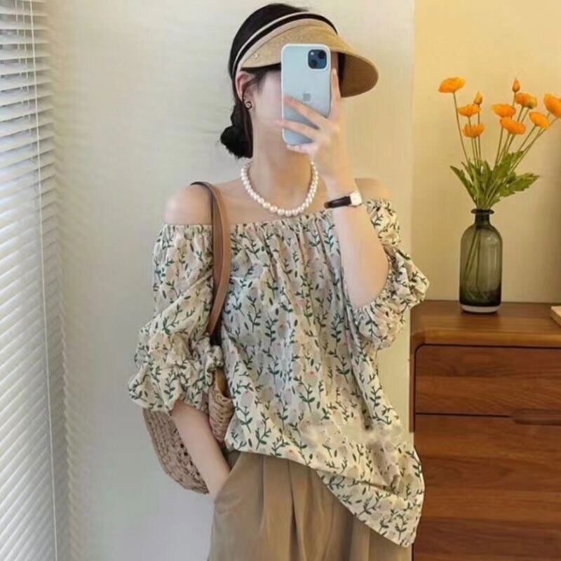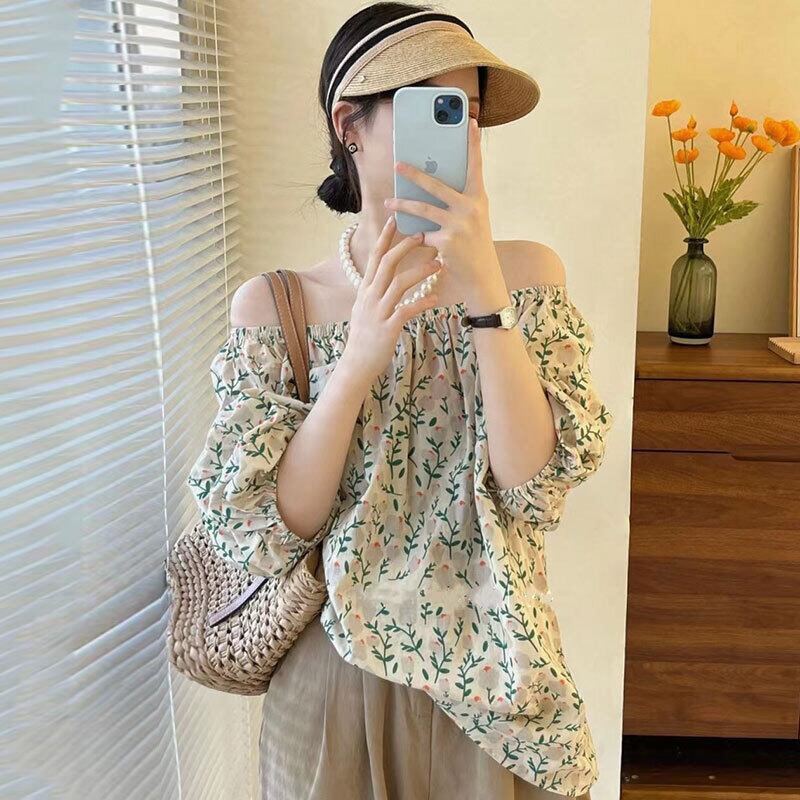 サマーカラールーズカジュアルスリーブフローラルシャツ トップス レディース エレガント 夏物 花柄 6/8 mi4642061604568