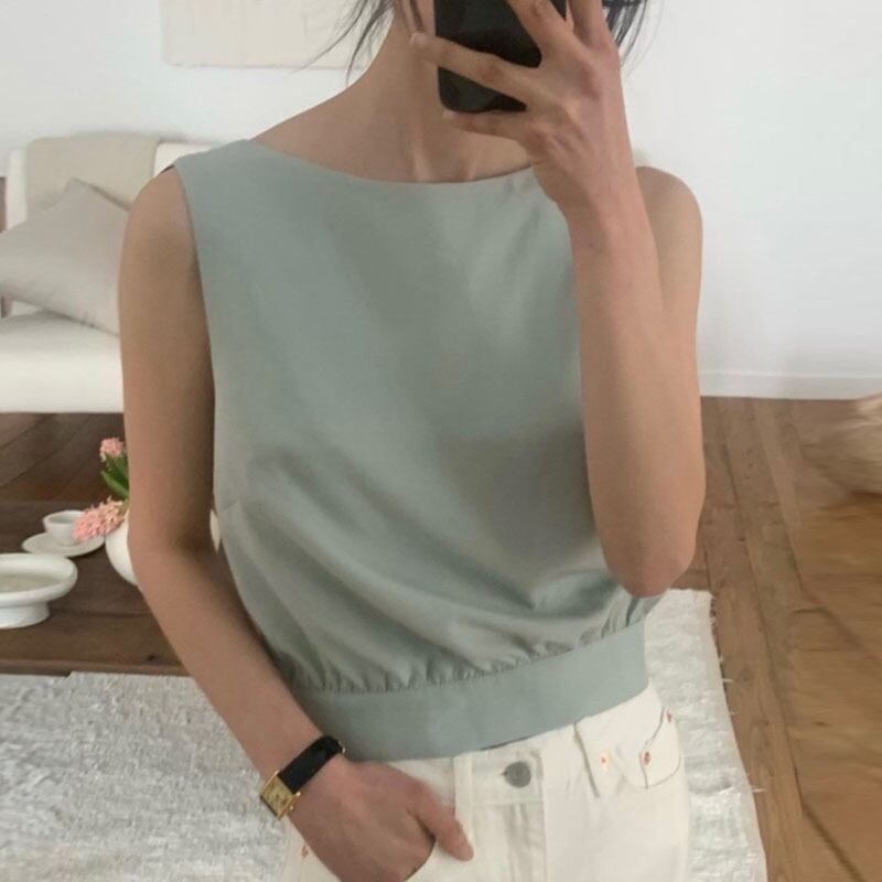 サマーバックレスクロスルーズノースリーブシャツ エレガント 夏物 6/8 mi4641969496759