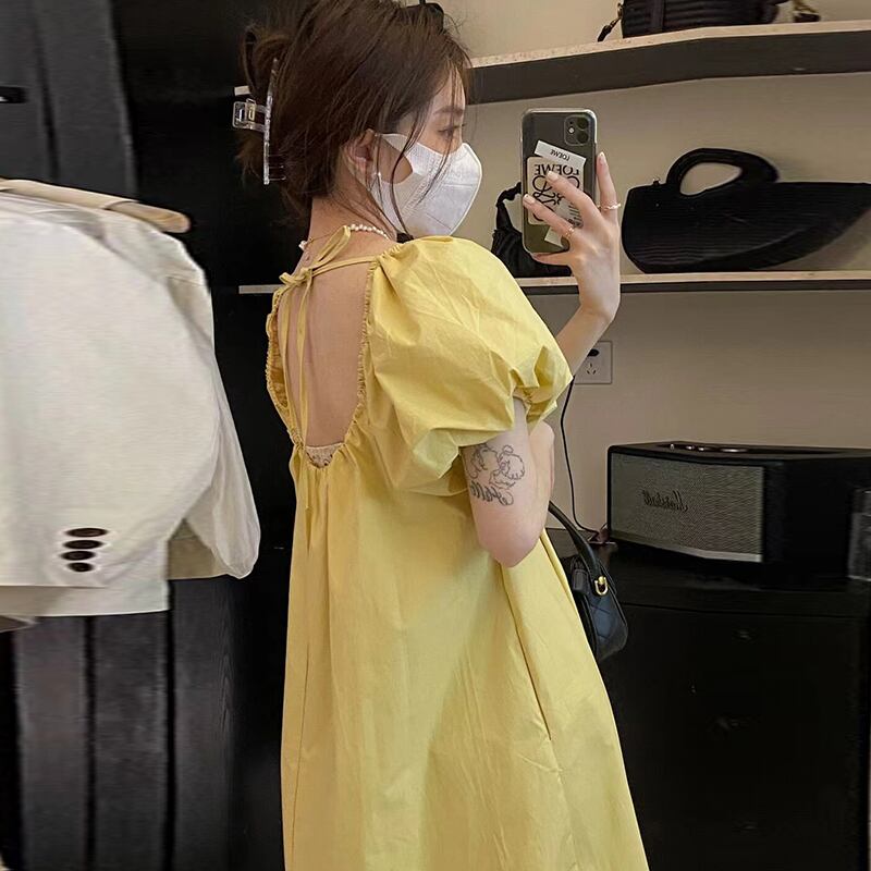 サマーカラーレースバックルーズスリーブロングドレス レディース エレガント 夏物 スクウェア 6/8 mi4636148218213