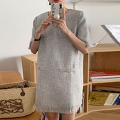 サマーラウンドネックメタルバックルルーズドレス エレガント 夏物 Oネック 6/8 mi4660159310651
