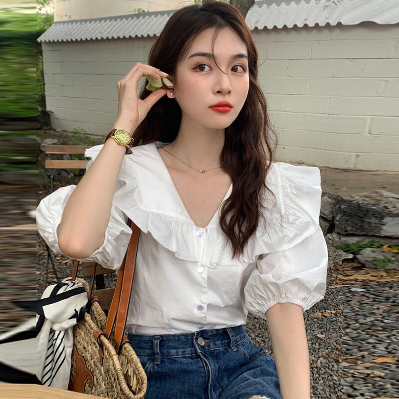 サマーネイビーカラールーズスリーブシャツ 夏物 ステッチ 6/8 mi4682749074541