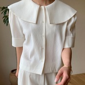 スタンダードネイビーカラーダークパターンルーズショートカーディガンシャツ レディース レトロ 6/8 mi4622697882625