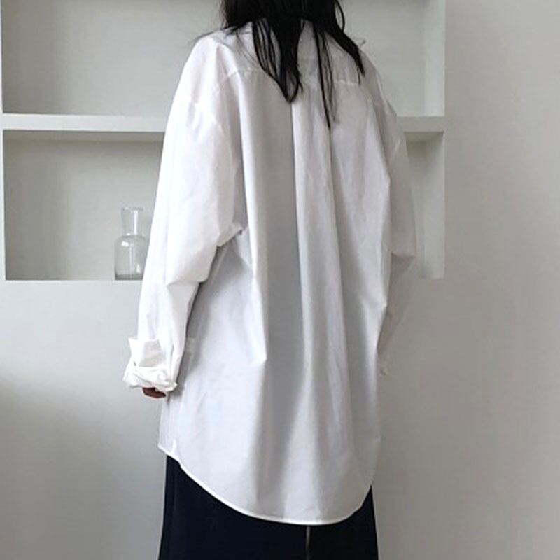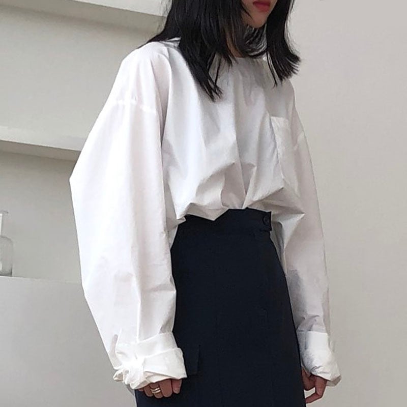 スプリングスタンダードラウンドネックポケットルーズカジュアルスリーブボタンシャツ トップス レディース ランタンスリーブ レトロ 春物 Oネック 6/8 mi4651788894294