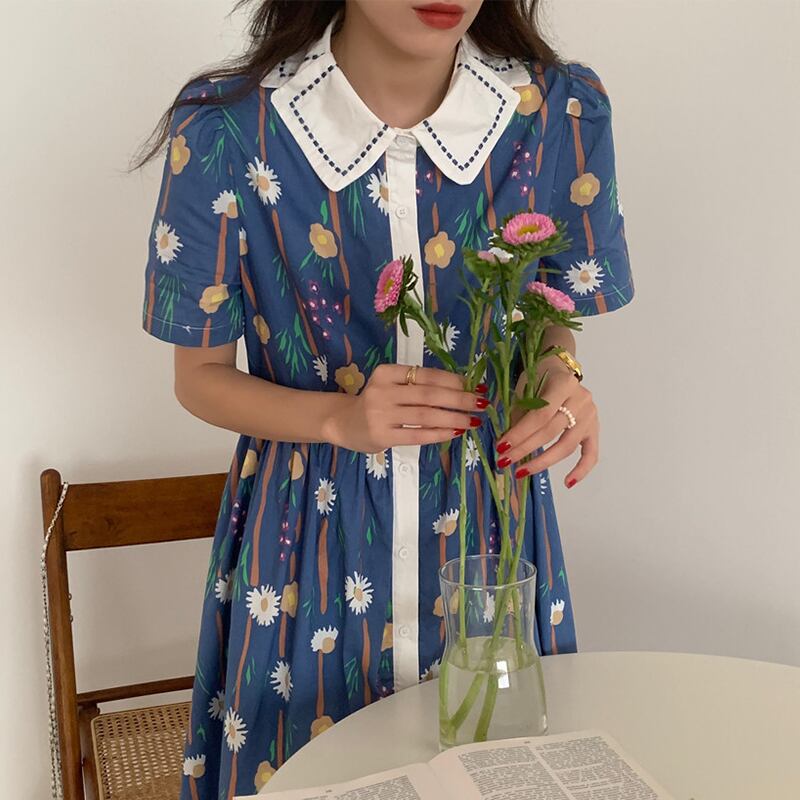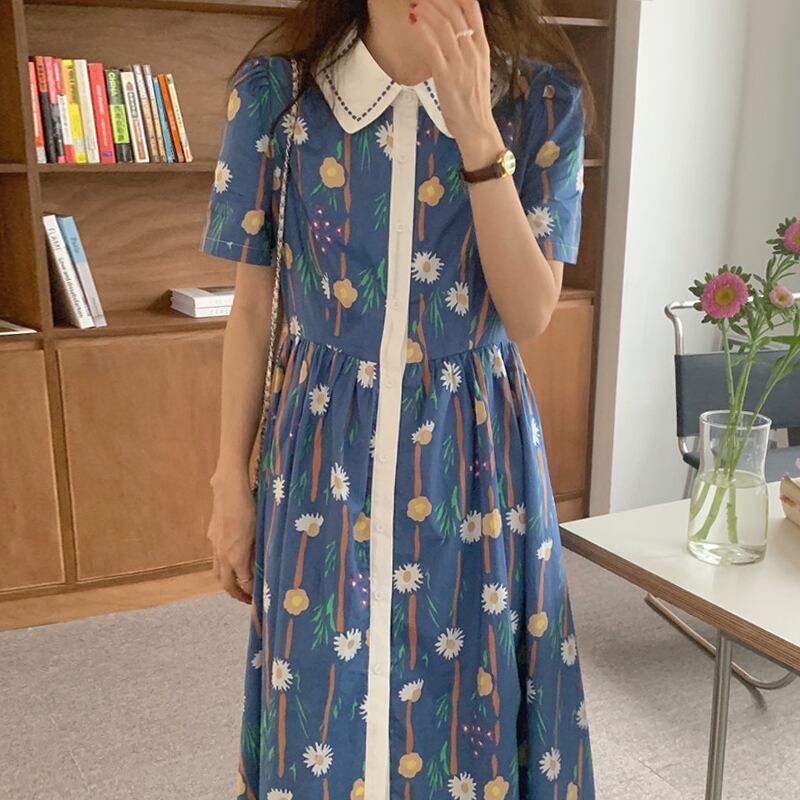サマースタンダード刺繍Flowerデザイン ドレス ロングスカート レトロ エレガント 夏物 フラワーデザイン 6/8 mi4664706775439