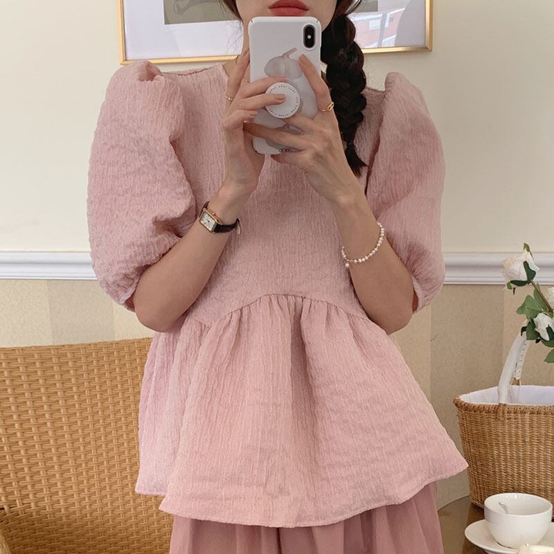 サマーラウンドネックバックスリーブシャツ レッド 夏物 Oネック 6/8 mi4697504291123