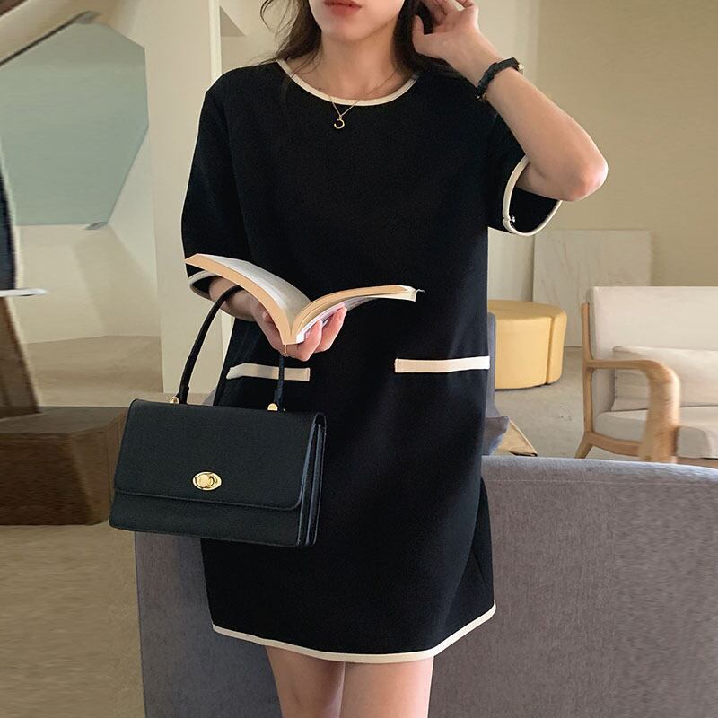 サマーラウンドネックカラールーズポケットドレス 夏物 Oネック 6/8 mi4639448353177
