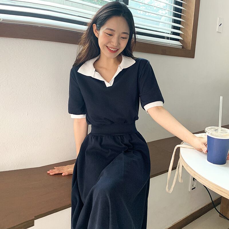 サマースタンダードカラーハイウェストウェストスリムロングドレス レディース レトロ エレガント 夏物 ステッチ 6/8 mi4618648692905