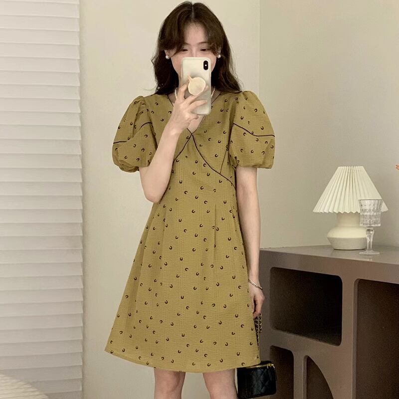 サマーVネックカラールーズショートドレス レディース エレガント 夏物 6/8 mi4668040286648