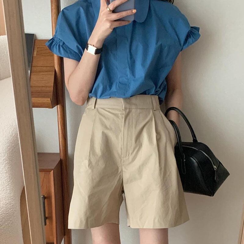サマールーズスリーブシャツ ハイウェストウェストスリムプリーツスカート レディース 夏物 6/8 mi4649326150938
