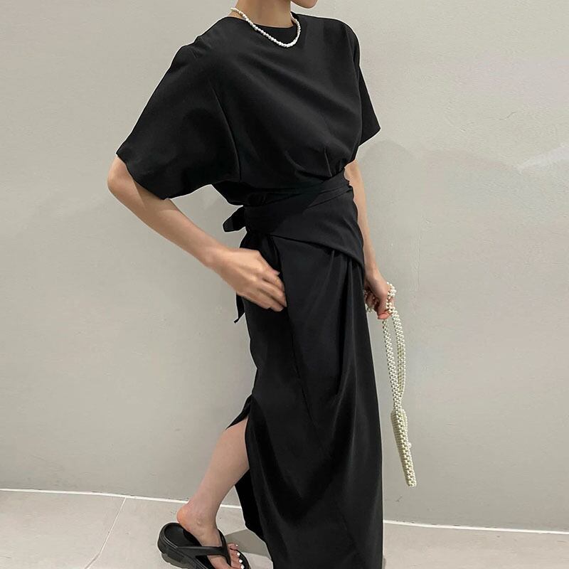 サマースタンダードラウンドネックレースウェストポケットドレス レトロ 夏物 Oネック 6/8 mi4625063906266