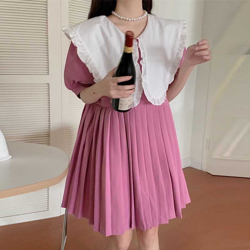 サマーカラーレースルーズプリーツショートドレス レディース エレガント 夏物 ステッチ 6/8 mi4630245655730