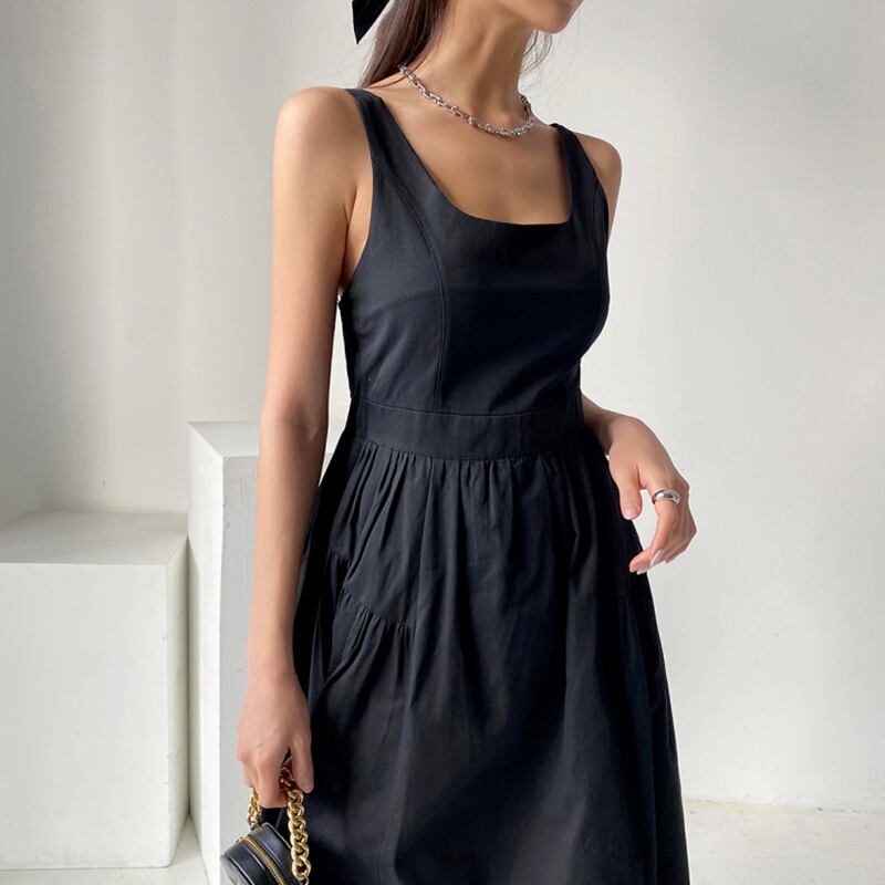 サマーカラーウェスト薄手ノースリーブドレス 夏物 スクウェア 6/8 mi4686508693803