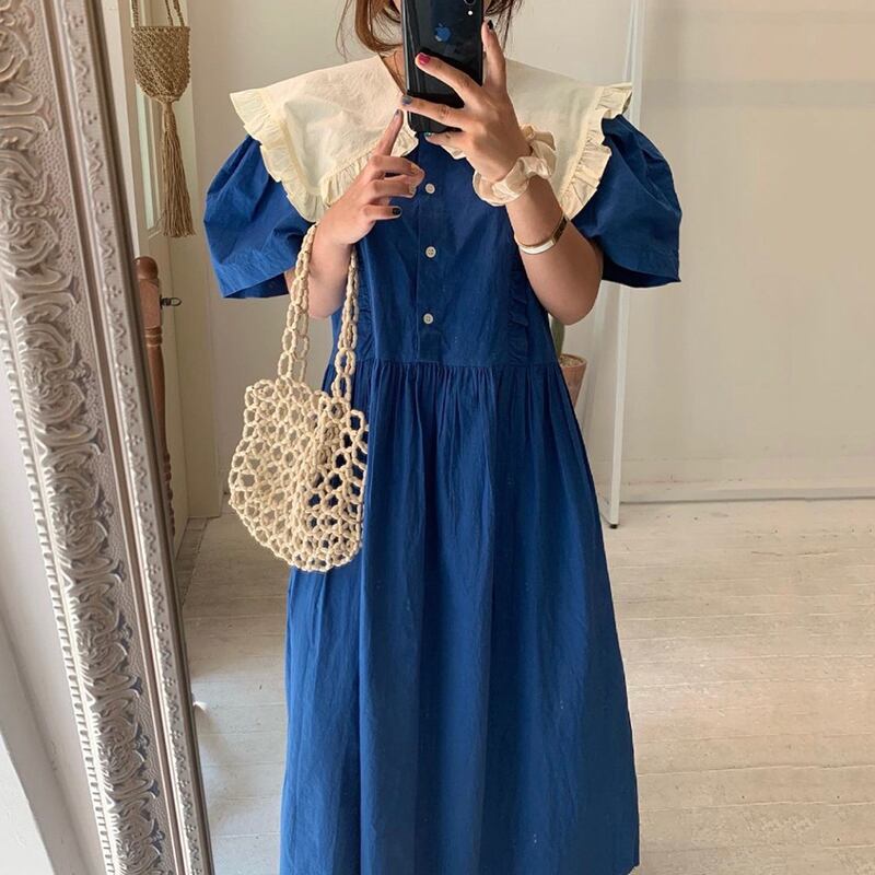 サマーレースルーズスリーブロングドレス レディース 夏物 ステッチ 6/8 mi4666065685083