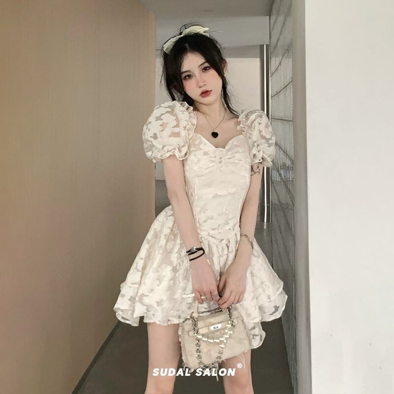 サマー薄手ウェストジャカードドレス ふわふわ 夏物 6/28 mi4644010114434