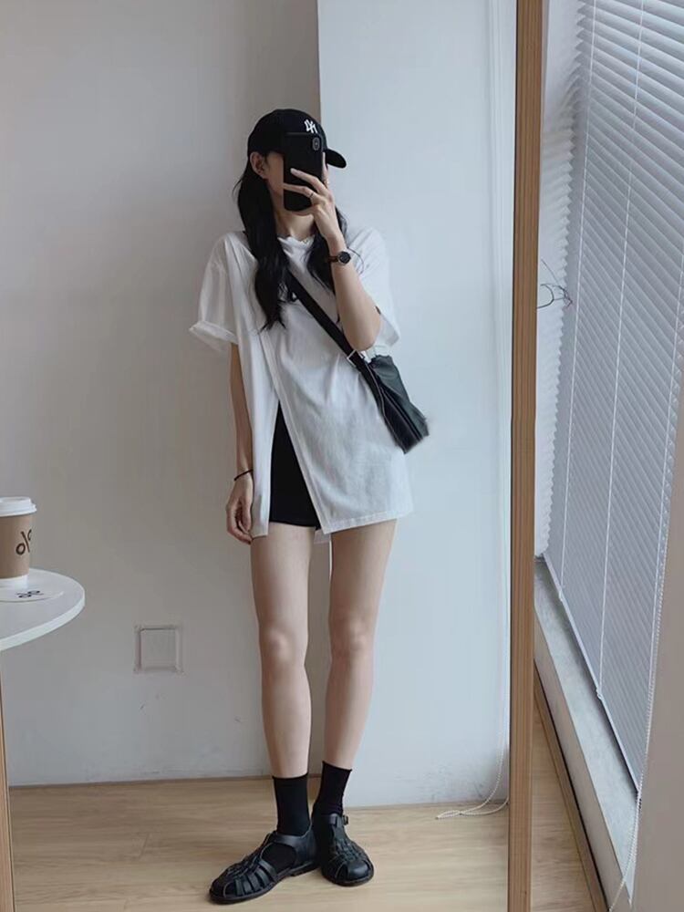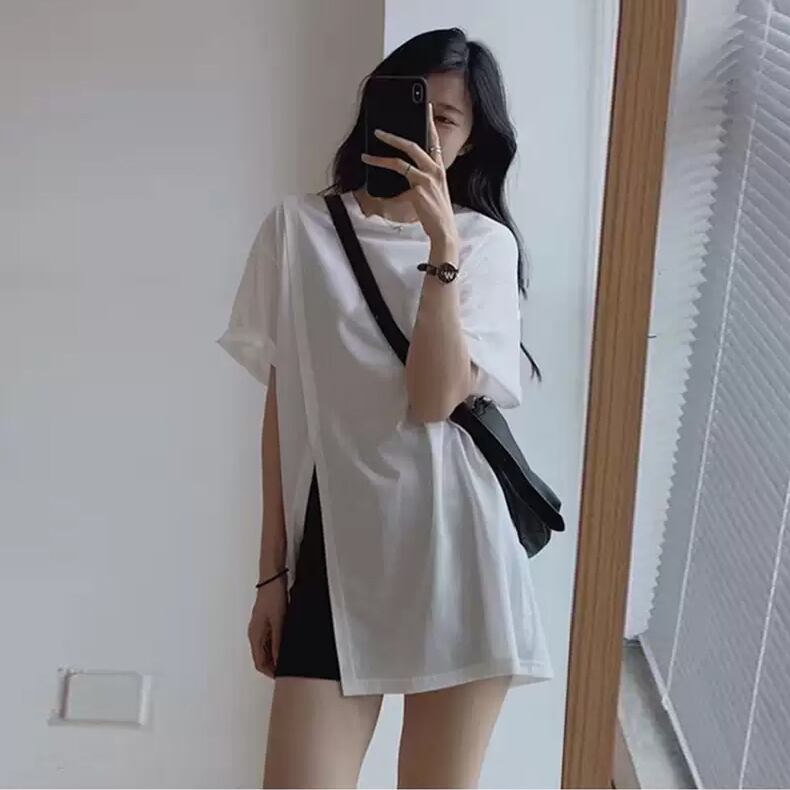 ホワイトスリットTシャツ トップス サマールーズカジュアルワイドレッグパンツ 夏物 ワイドパンツ 6/28 mi4641286280854