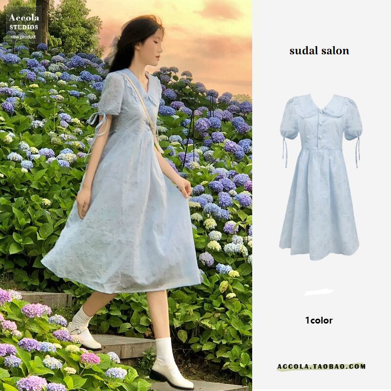 サマースタンダードブルードレス ウェストレース薄手スカート レッド レトロ 大人ガーリー スウィート キュート カジュアル 夏物 6/28 mi4682597328543