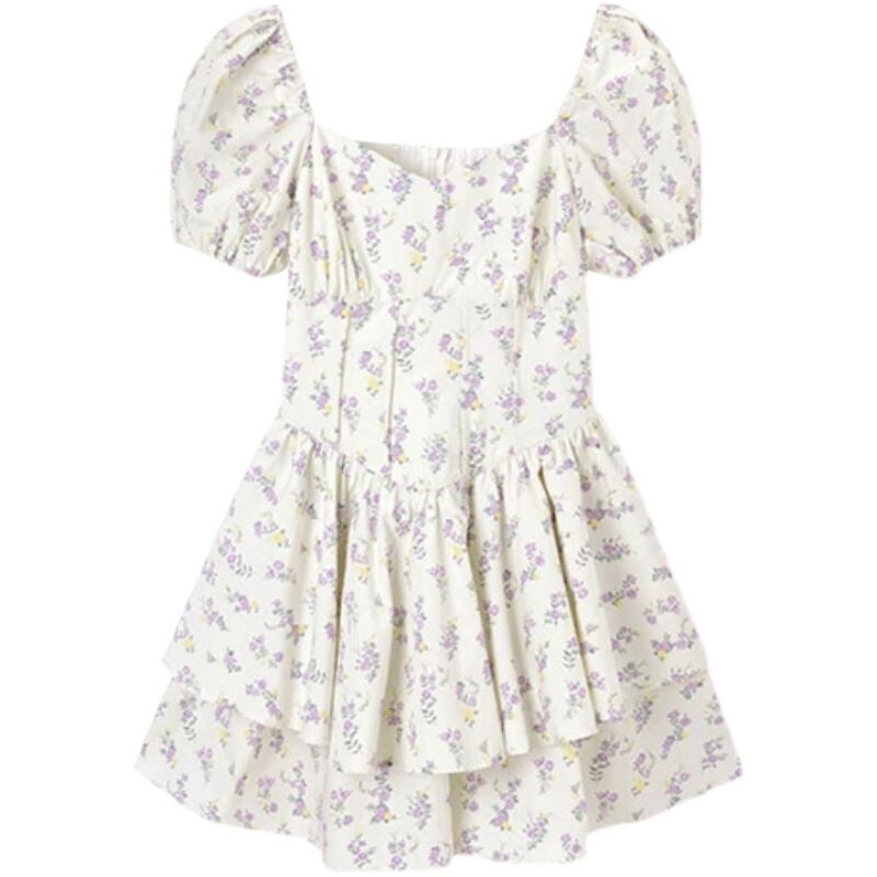 カラーウェストドレス フローラルスカート サマー 大人ガーリー スウィート キュート カジュアル 夏物 花柄 6/28 mi4646119049451