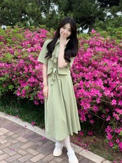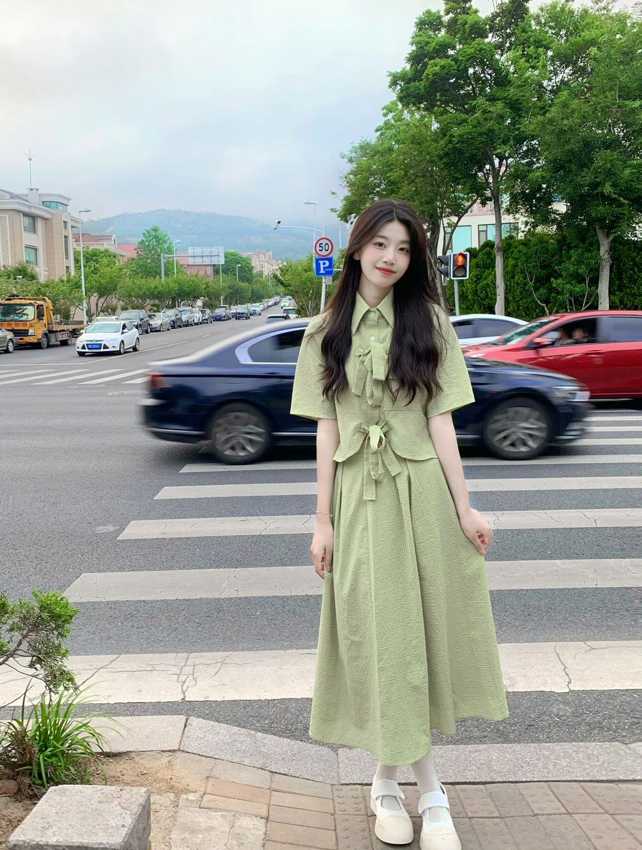 ソリッド カラーシャツ ハイウェストウェストスカート サマー レース 夏物 レースアップ ソリッドカラー フラワーデザイン 6/28 mi4665417127990
