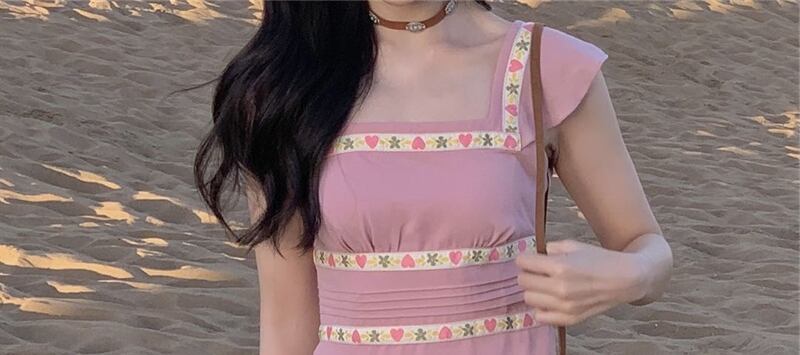 サマードレス ウェストロングスカート ピンク 大人ガーリー スウィート キュート カジュアル 夏物 スクウェア 6/28 mi4634650858906