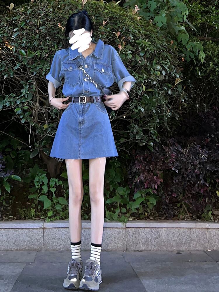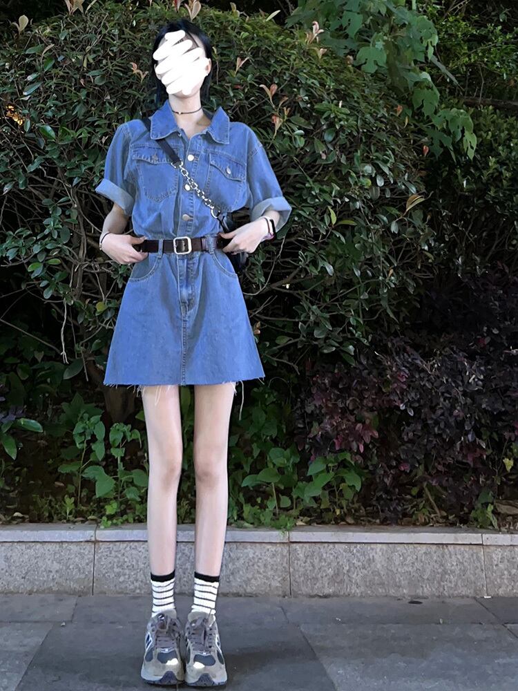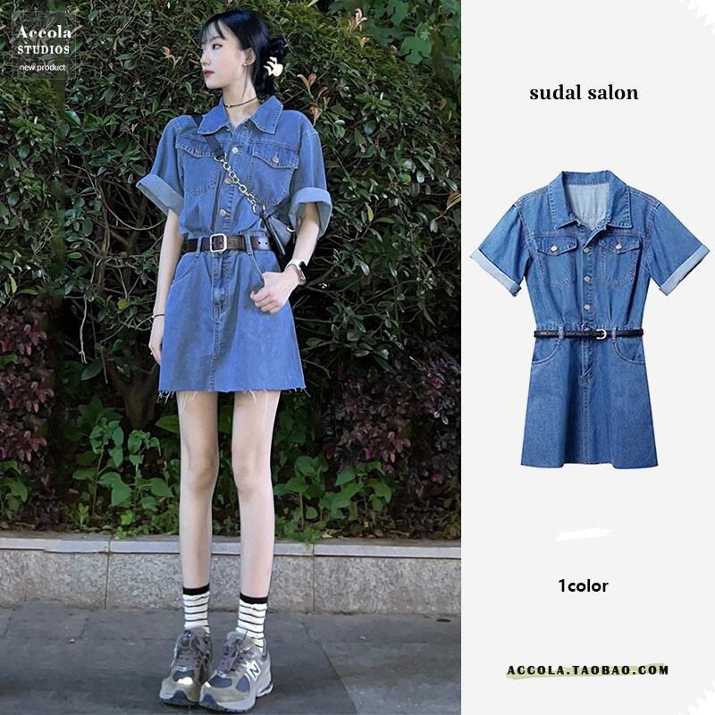 サマーネイビースタイルスタンダードドレス ウェスト レトロ 大人ガーリー スウィート キュート カジュアル 夏物 6/28 mi4626810273453