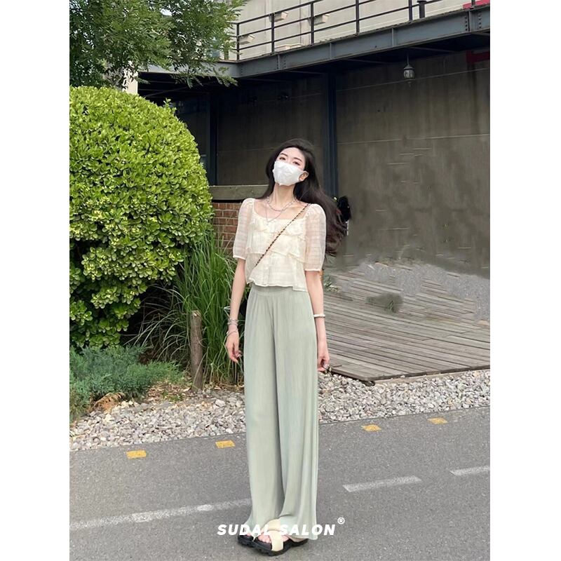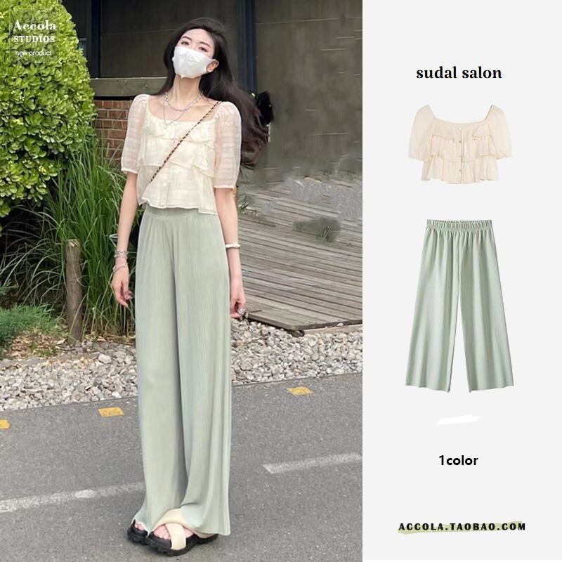 色:アプリコットトップ,ビーングリーンワイドレッグパンツ,アプリコットトップ+ビーングリーンワイドレッグパンツ