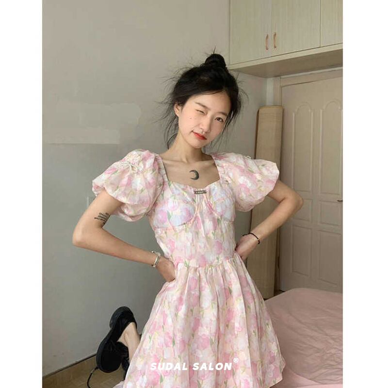 ウェストフローラルロングスカート サマードレス スタンダード レトロ 大人ガーリー スウィート キュート カジュアル 夏物 花柄 6/28 mi4643716050773