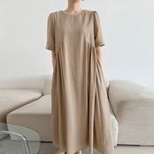 サマーラウンドネックルーズカジュアルスリーブロングドレス レディース 夏物 Oネック 7/20 mi4642027057108
