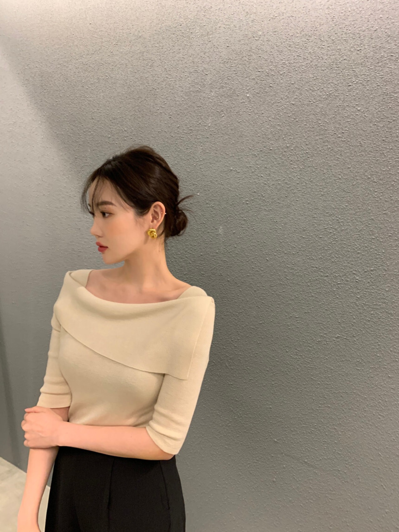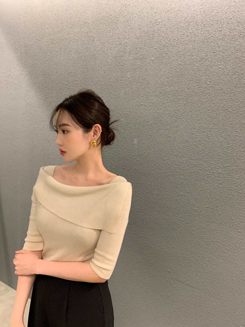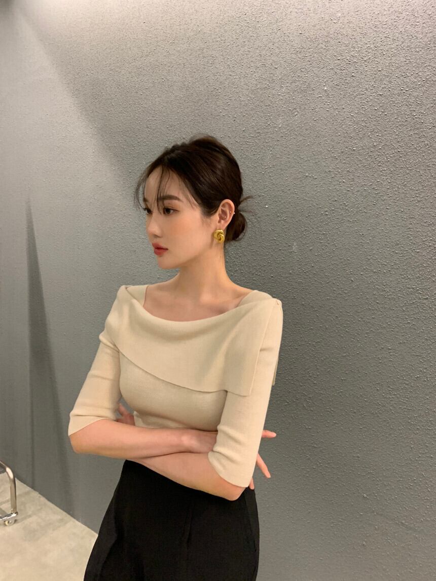 サマースタンダードスリムフィットスリーブニットセーター レディース レトロ 夏物 7/20 mi4678472420009