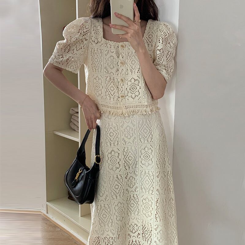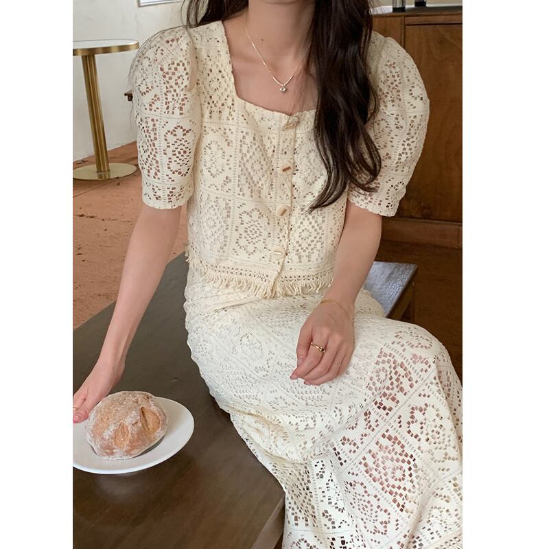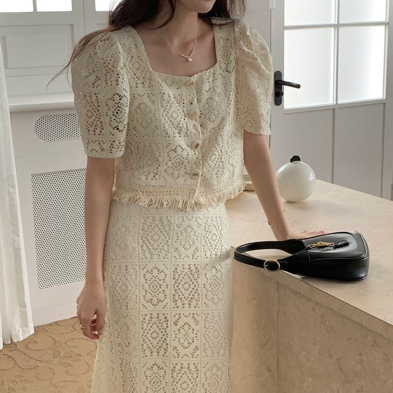 サマーカラーFlowerデザイン シャツ ハイウェストウェストスリムスカート 夏物 フラワーデザイン スクウェア 7/20 mi4642698215422