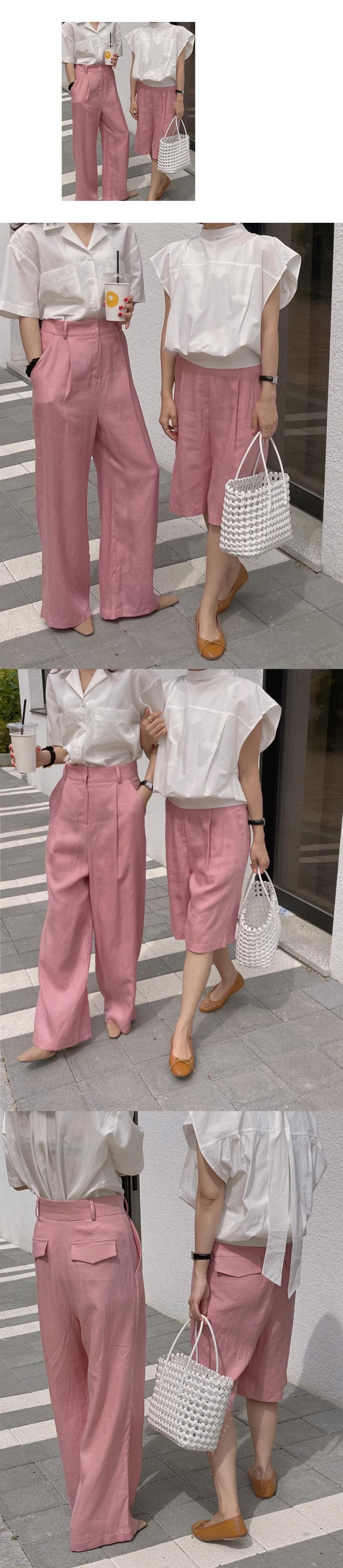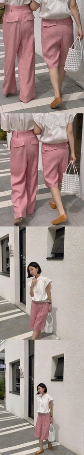 サマーハイウェストウェストワイドレッグカジュアルダブルポケットパンツ レディース 夏物 ワイドパンツ 7/20 mi4655581840663