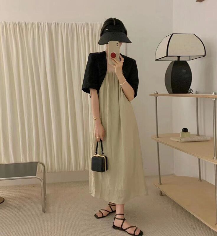 サマーショートカーディガンジャケット ルーズロングドレス 夏物 7/20 mi4657427761211