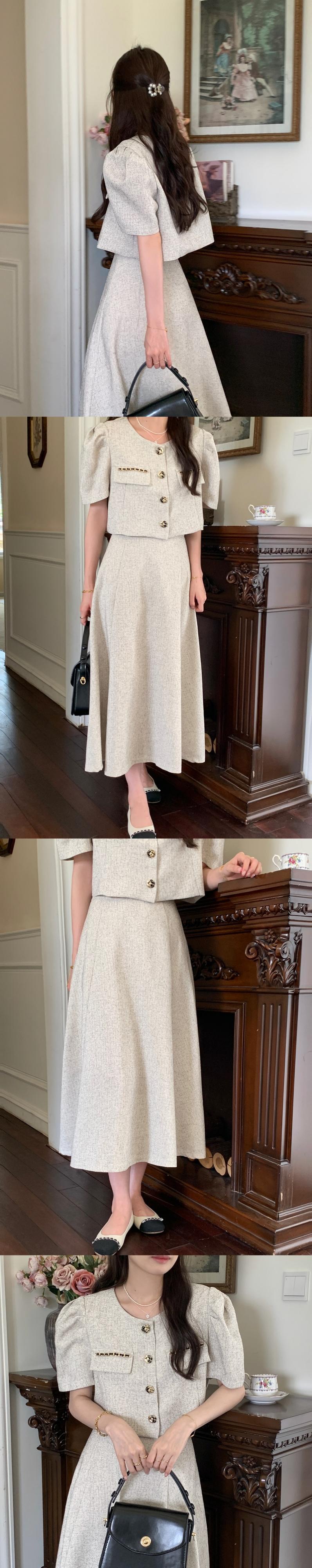サマーラウンドネックメタルボタンコート ハイウェストウェストツィードスカート 夏物 Oネック 7/20 mi4696705617198