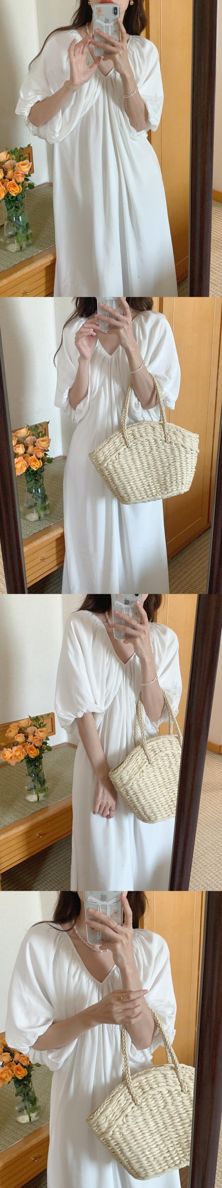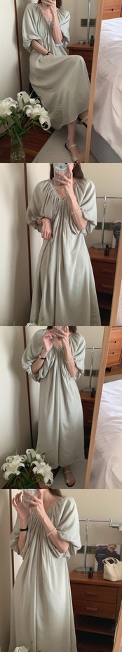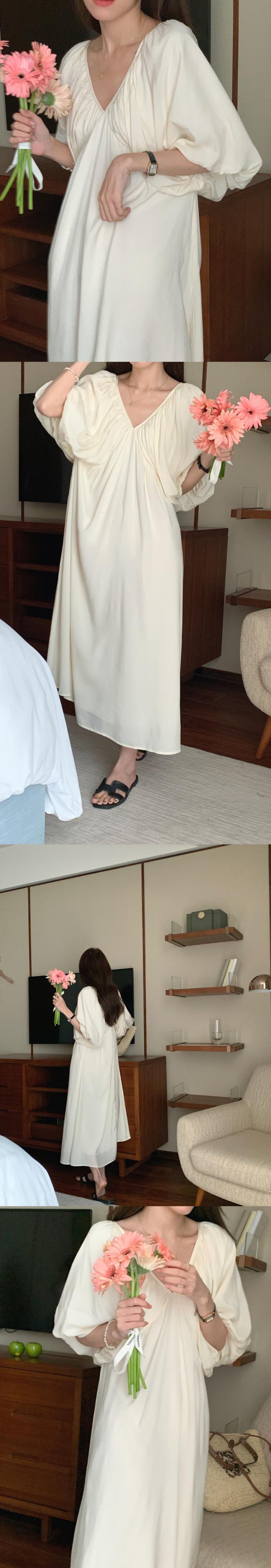 サマーVネックバックレスルーズスリーブドレス ロングスカート ランタンスリーブ レース 夏物 レースアップ 7/20 mi4697641773064