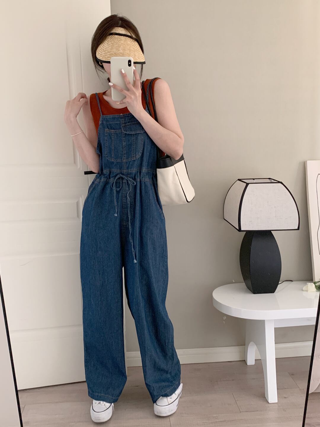 色:ダークブルーのジャンプスーツ,黒のジャンプスーツ,ホワイトニットベスト,赤いニットベスト