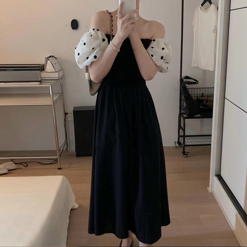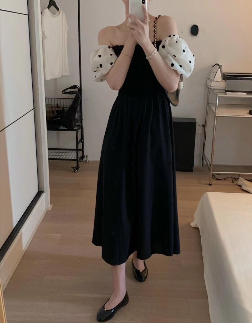 サマーカラースリーブ水玉ドレス 夏物 スクウェア 7/20 mi4636644967803