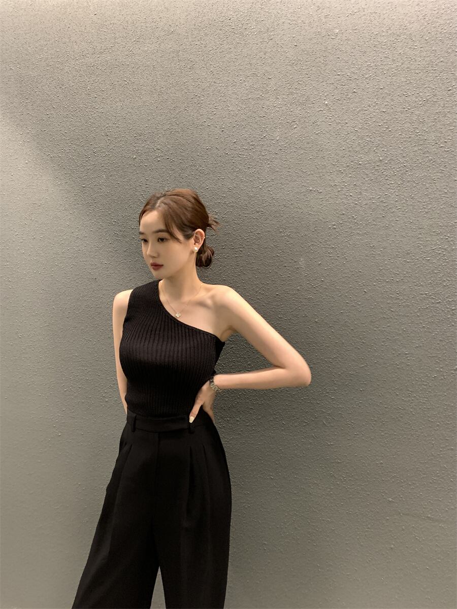 サマーアシンメトリー薄手ショートニットレディース 夏物 7/20 mi4645717093278