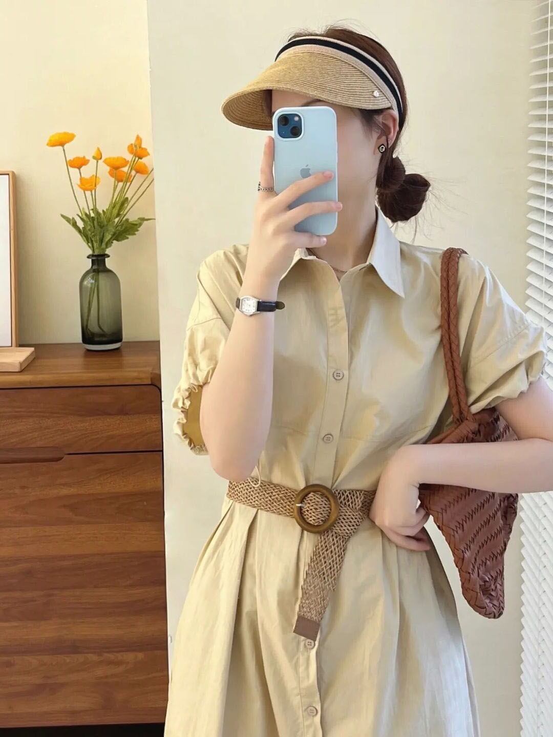 サマースリーブシャツ ドレス ロングスカート レディース 夏物 ハーネス ベルト 7/20 mi4649776134180