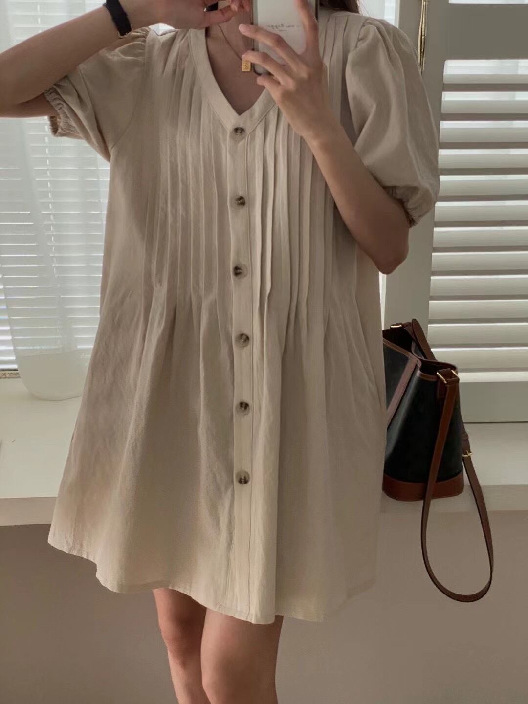 サマーVネックプリーツルーズドレス 夏物 7/20 mi4619794661863