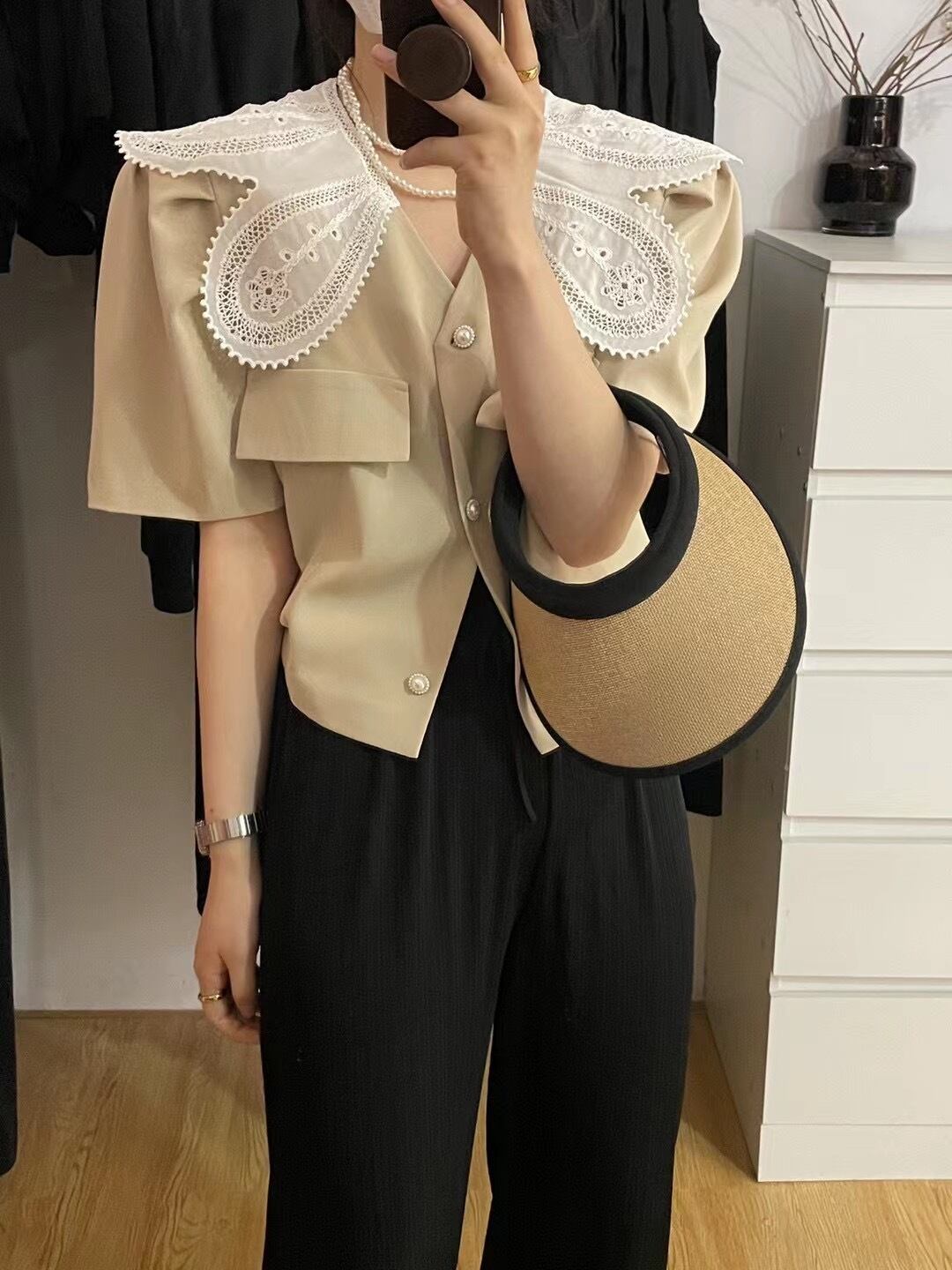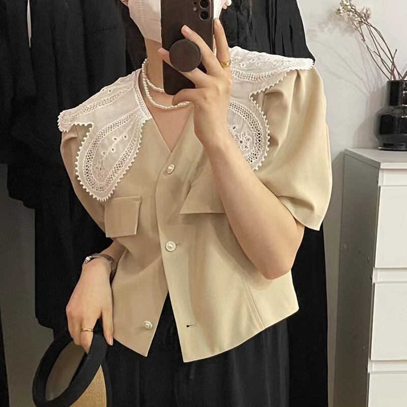 サマーレースカラールーズパールスリーブシャツ レディース 夏物 真珠 7/20 mi4696739531241