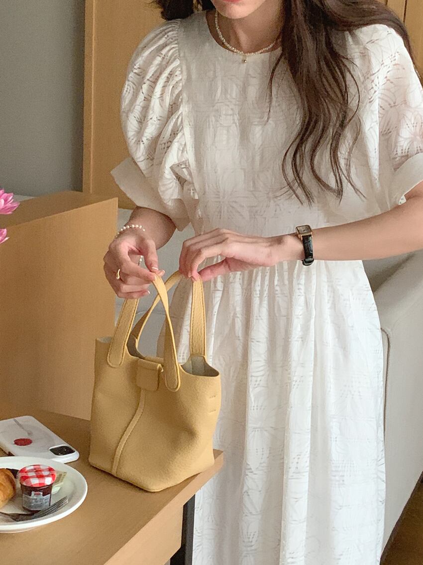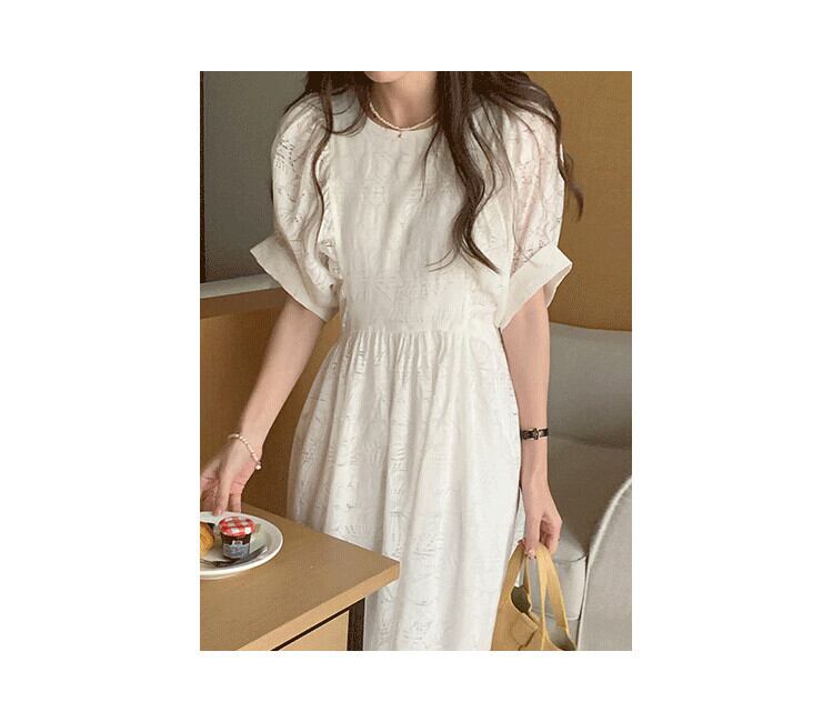 サマーラウンドネックダークパターンレースウェストスリーブドレス 夏物 Oネック 7/20 mi4683668954113