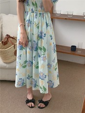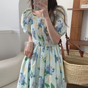 サマーカラープリーツウェストスリーブフローラルドレス エレガント 夏物 花柄 7/20 mi466604346738
