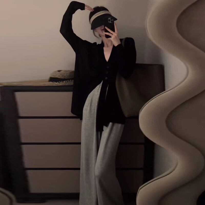 サマースタイルVネックボタントップス ハイウェストウェストワイドレッグパンツ 夏物 ワイドパンツ 7/20 mi4650109396212