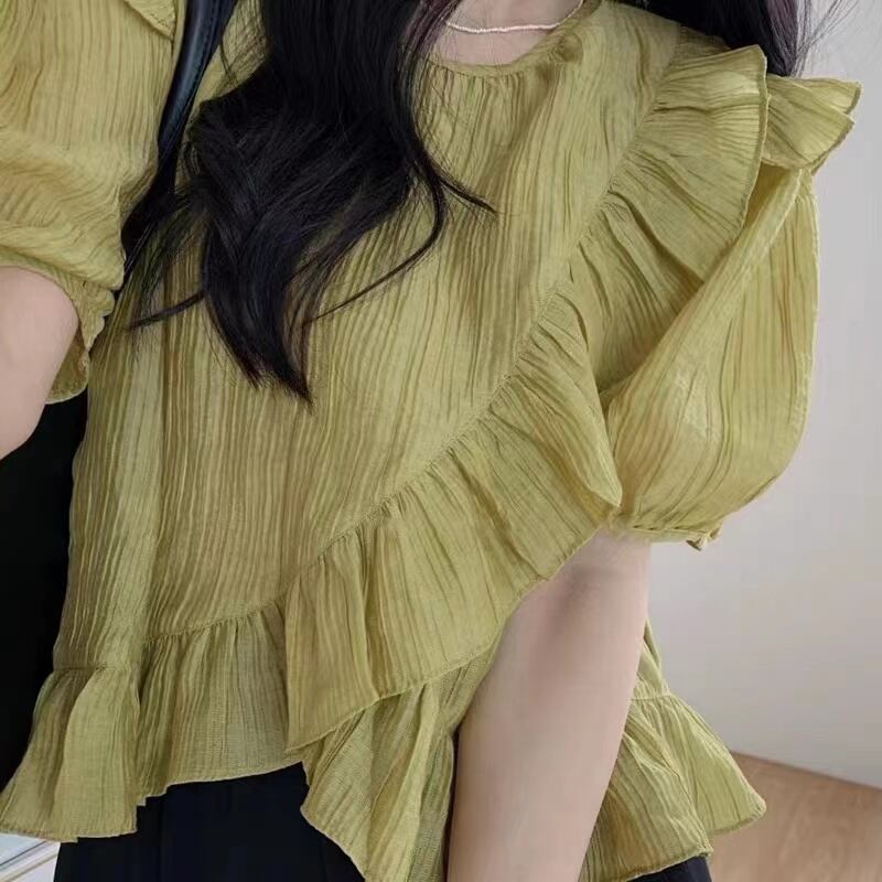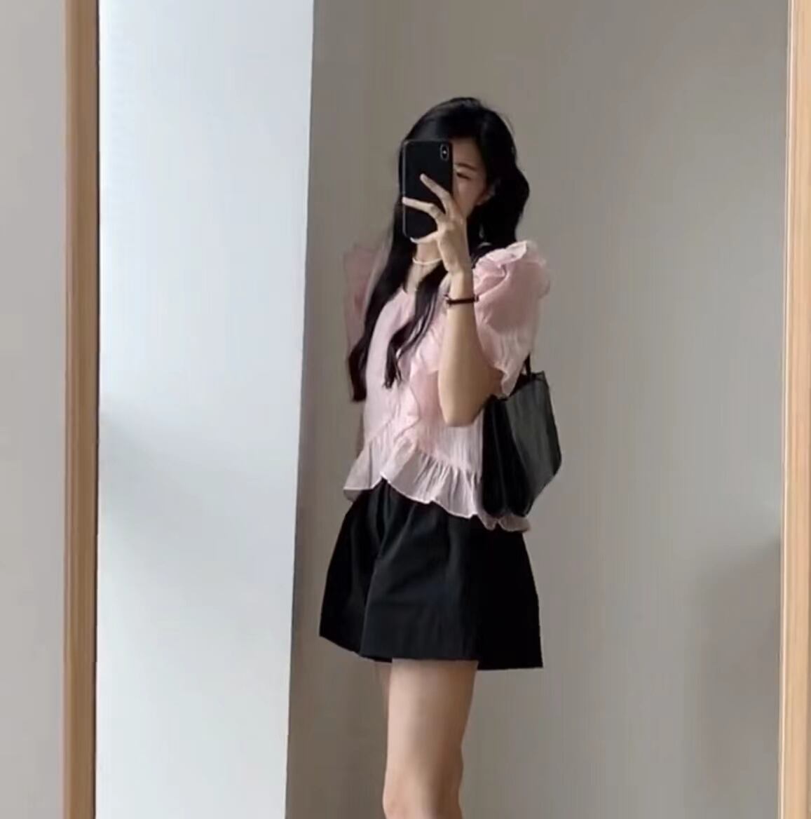 サマーラウンドネックシャツ ハイウェストウェストスリットカジュアルワイドレッグパンツ 夏物 Oネック ワイドパンツ 7/20 mi4614990122947