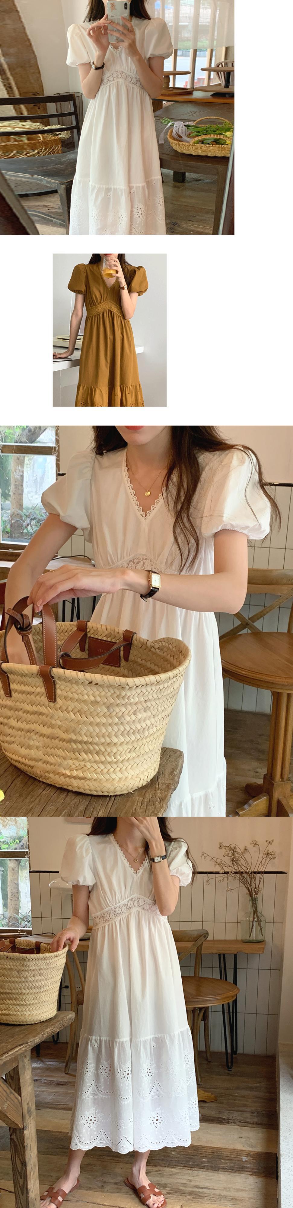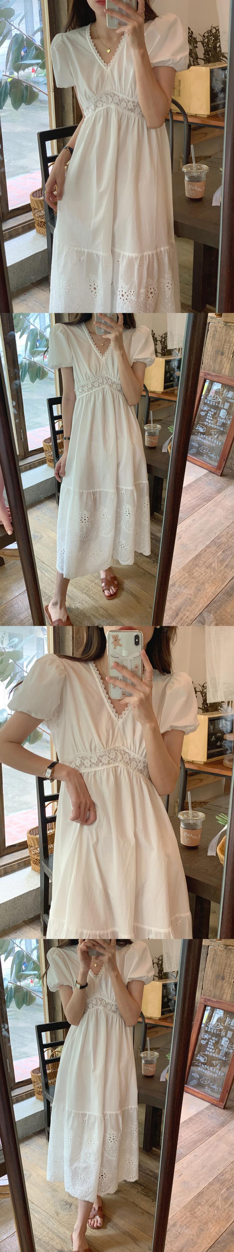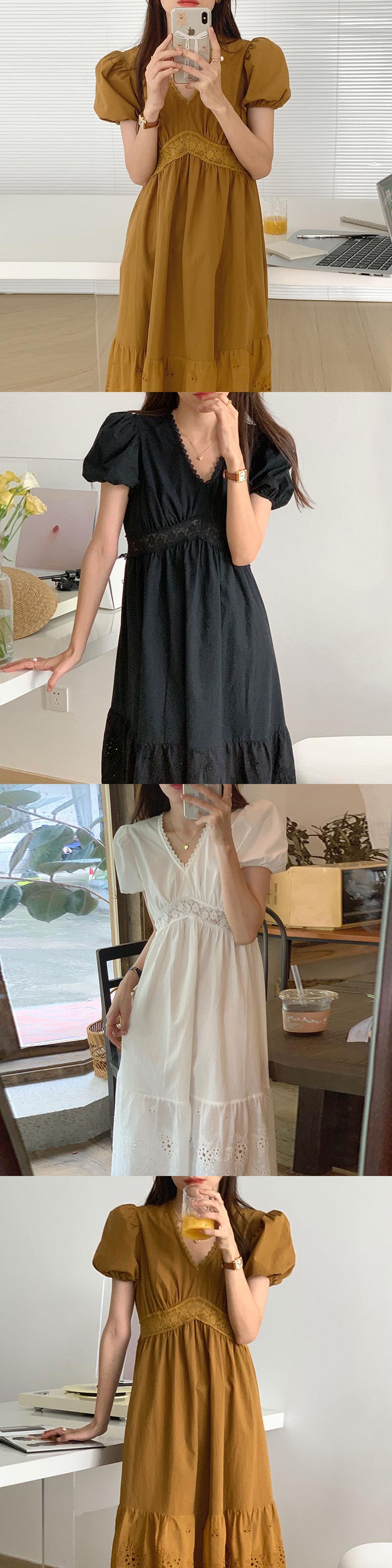 サマースタンダードレースVネックスリーブドレス レディース レトロ 夏物 ステッチ 7/20 mi4622267938217