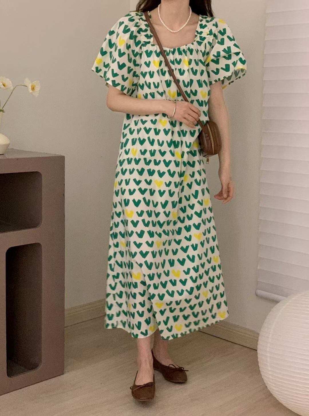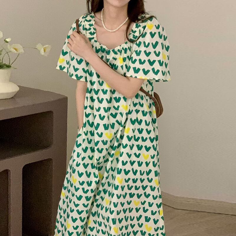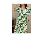 サマーカラーウェスト薄手スリーブFlowerデザイン プリント柄ドレス エレガント 夏物 フラワーデザイン スクウェア 7/20 mi4683805901171