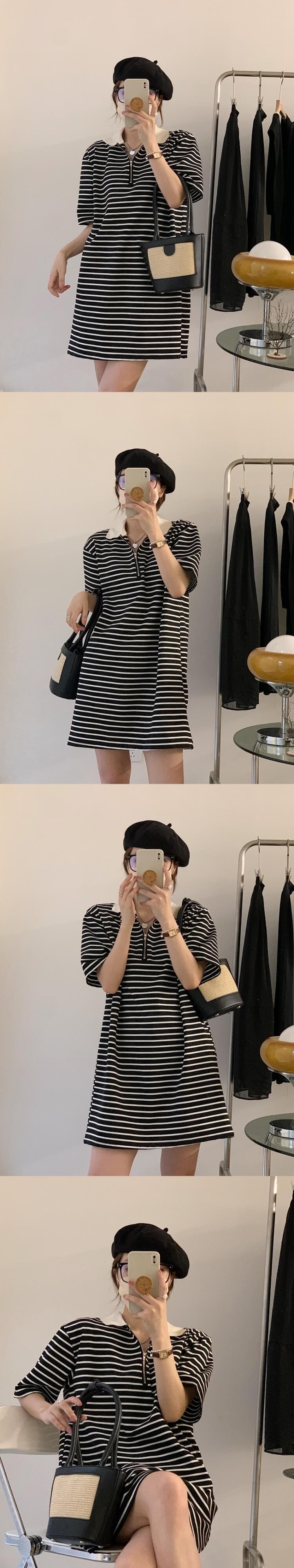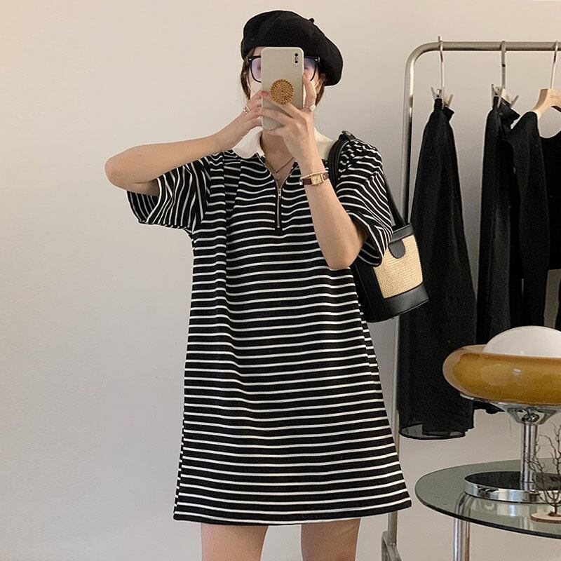 サマースタンダードジッパーカラーストライプルーズカジュアルドレス レトロ 夏物 7/20 mi4623226508926