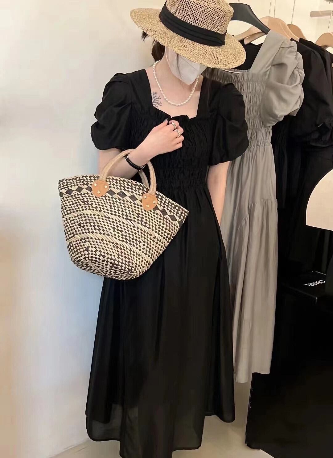 サマーカラープリーツウェストドレス エレガント 夏物 スクウェア 7/20 mi4654322452351