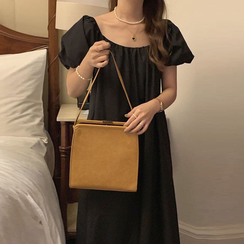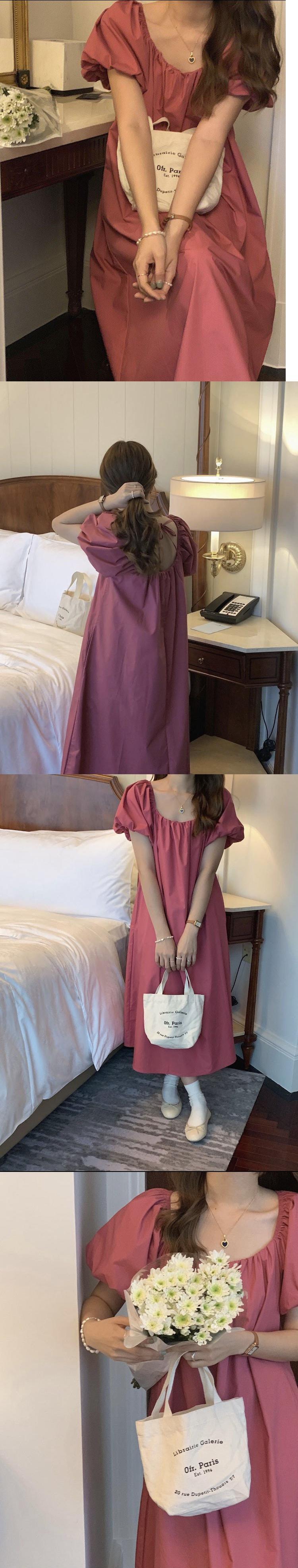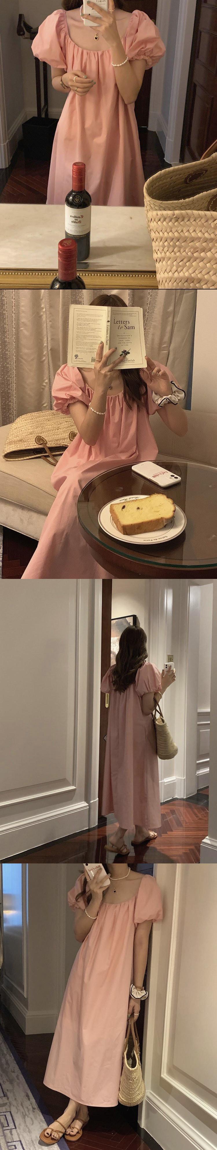 サマースタンダードカラールーズスリーブドレス レトロ 夏物 スクウェア 7/20 mi4614241220218