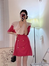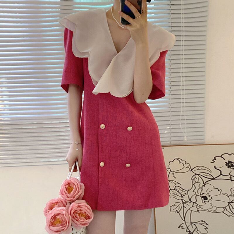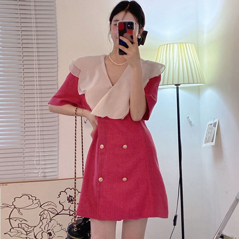 サマーVネックダブルブレストウェスト薄手スリーブAラインドレス 大人ガーリー スウィート キュート カジュアル 夏物 7/20 mi4685715308939
